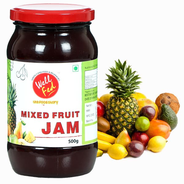 WellFed Mixed Fruit Jam is a medley of flavours, prepared by blending different kinds of fruits and fruit pulps together. With the goodness of farm fresh fruits, this Mixed Fruit Jam is perfect partner to bread for a filling and delicious breakfast. WellFed Mixed Fruit jam is loved by kids as well as adults. Serve this sweet and tasty preserve with breads, cakes, paranthas or any of your favourite dishes.