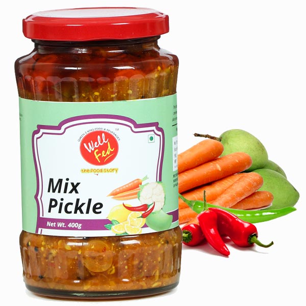 WellFed Mix Pickle are prepared from variety of finest fruits and vegetables, like mango, lemon, gaajar, gobhi, chilli and more. Mix Pickle can add a delicious flavour to your palate and can provide an interesting punch to any meal, from any region of the country.