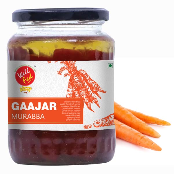 WellFed Gaajar Murabba is prepared with the finest quality farm fresh carrots and cooked to perfection. This sweet preserve is not only delicious but is a medicine in itself. Carrots are an excellent tonic for eyes and also good for fighting fatigue and general weakness. A favourite of all age groups, this easy-to-store and delicious murabba can be served in buffets or along with daily meals.